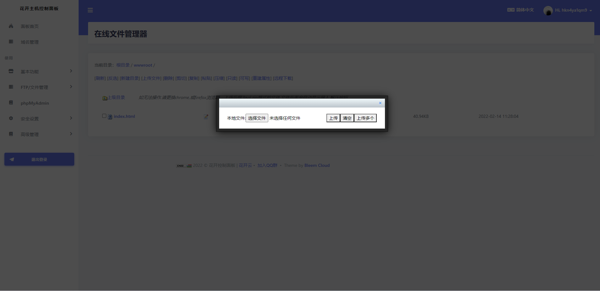 点击FTP/文件管理里的在线文件管理器进入主机文件管理