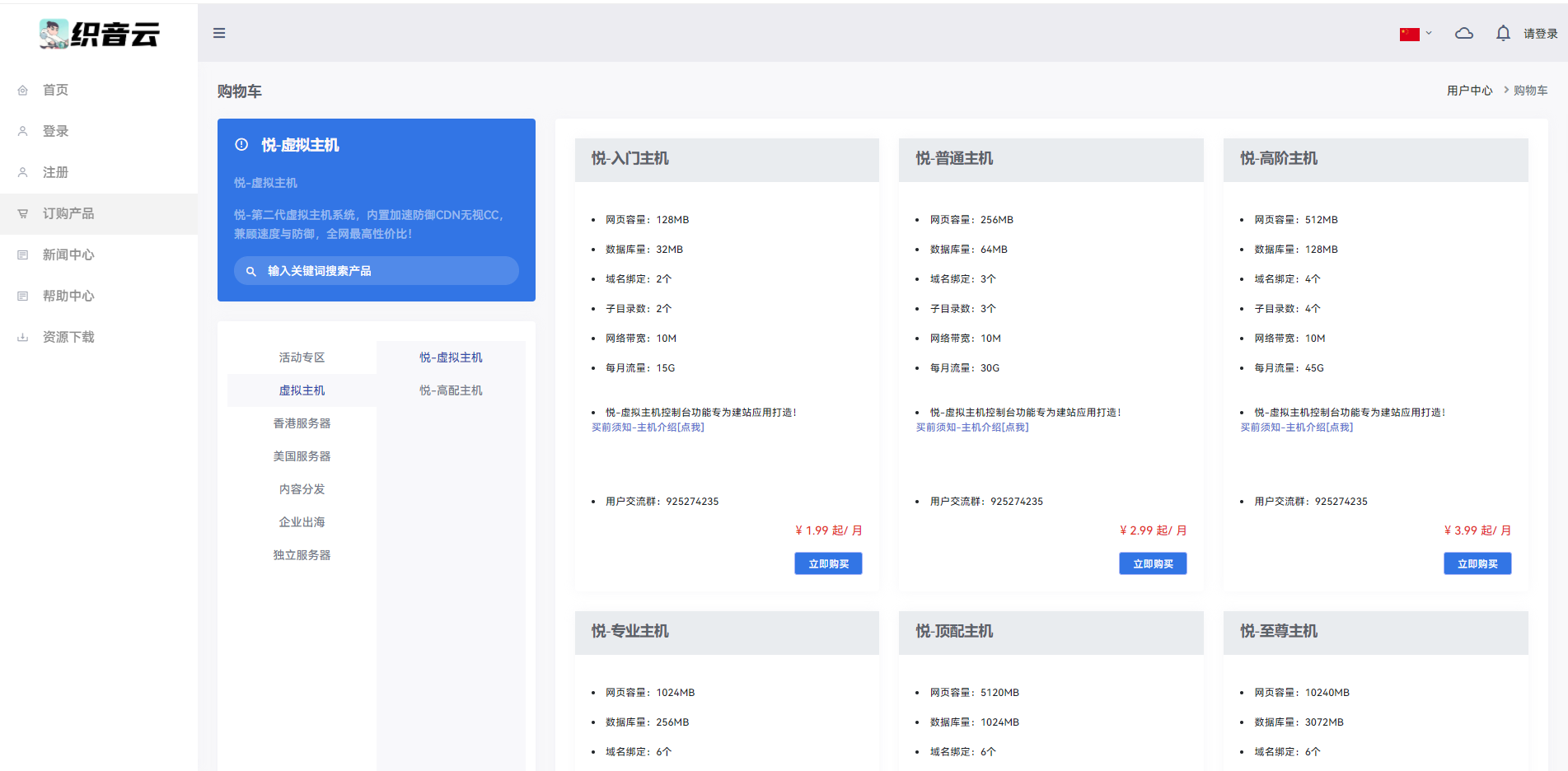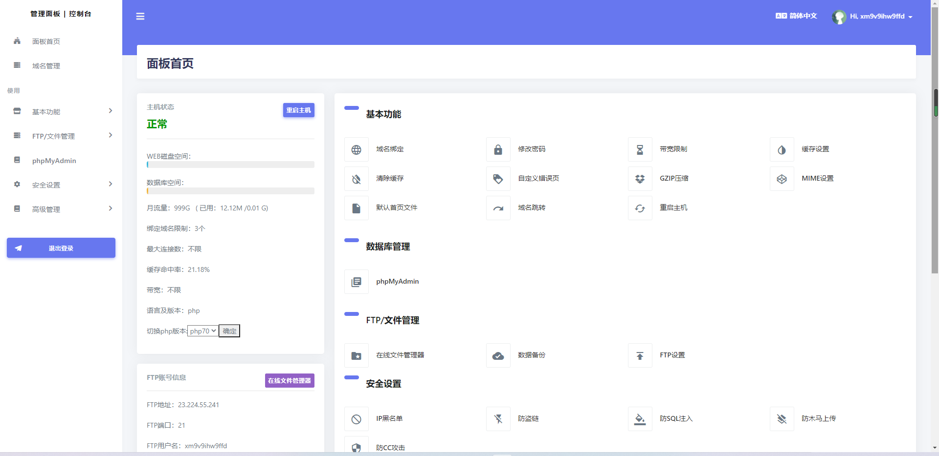 购买成功后登录进入控制页面(不同站点不同主机可能控制面板不同,但操作是相通的)