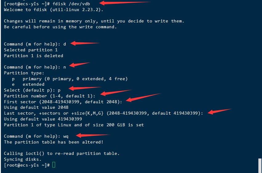 命令 fdisk /dev/vdb